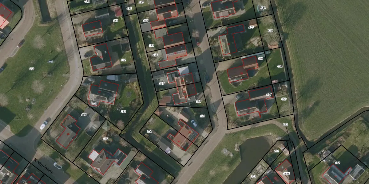 Koarnleane 30 is gelegen op kadastraal perceel NLD01K198. Deze kadastrale aanduiding is uniek en wordt gebruikt door het Kadaster om eigendomsrechten en andere zakelijke rechten vast te leggen. Het perceel maakt onderdeel uit van de kadastrale gemeente Nieuwland Friesland.