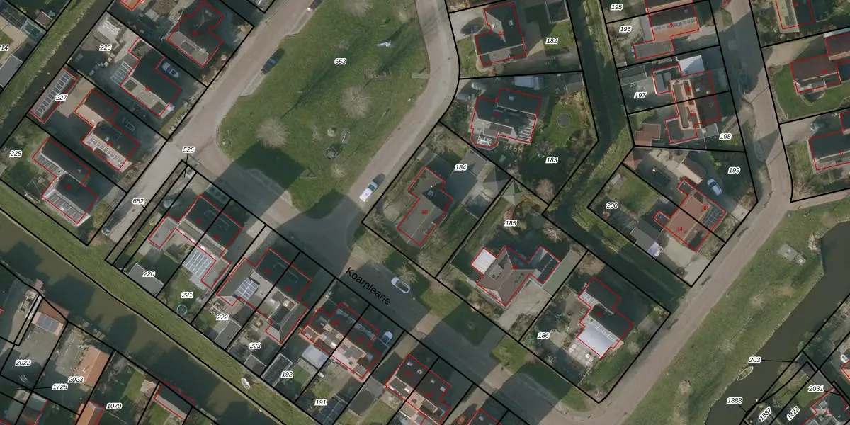 Het perceel waarop Koarnleane 40 staat heeft een oppervlakte van 650 m². Dit is een groot perceel. De perceeloppervlakte wordt geregistreerd door het Kadaster. Gedetailleerde informatie over de maten van dit perceel kunt u vinden in het rapport Kadastrale kaart met maatvoering van Koarnleane 40.