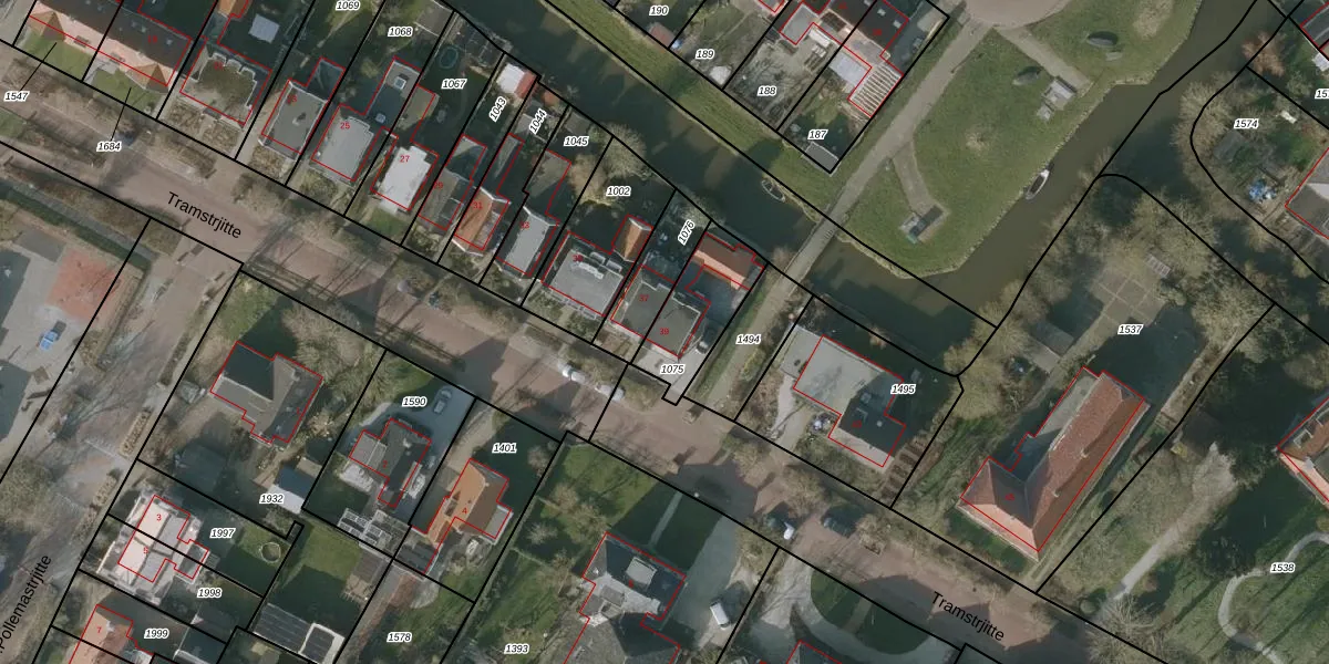 Tramstrjitte 39 is gelegen op kadastraal perceel NLD01A1075. Deze kadastrale aanduiding is uniek en wordt gebruikt door het Kadaster om eigendomsrechten en andere zakelijke rechten vast te leggen. Het perceel maakt onderdeel uit van de kadastrale gemeente Nieuwland Friesland.