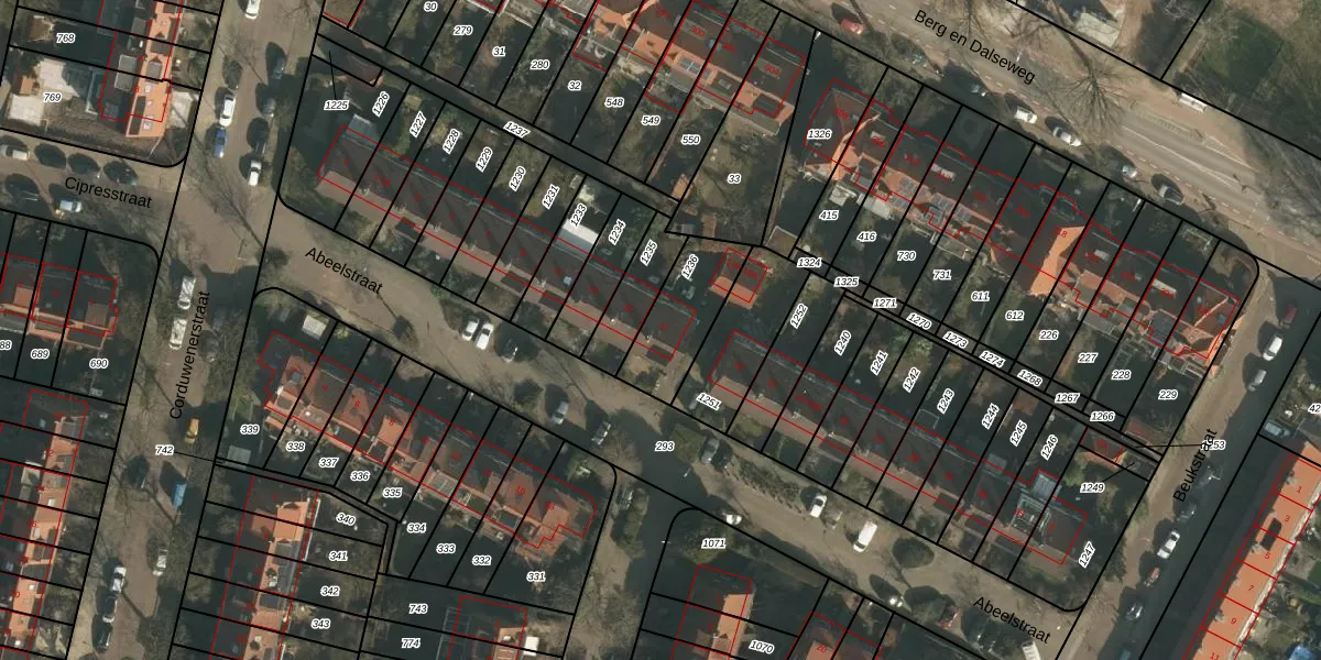 Het perceel waarop Abeelstraat 17 staat heeft een oppervlakte van 243 m². Dit is een middelgroot perceel. De perceeloppervlakte wordt geregistreerd door het Kadaster. Gedetailleerde informatie over de maten van dit perceel kunt u vinden in het rapport Kadastrale kaart met maatvoering van Abeelstraat 17.