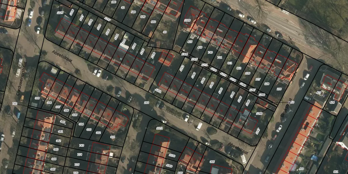 Het perceel waarop Abeelstraat 21 staat heeft een oppervlakte van 169 m². Dit is een middelgroot perceel. De perceeloppervlakte wordt geregistreerd door het Kadaster. Gedetailleerde informatie over de maten van dit perceel kunt u vinden in het rapport Kadastrale kaart met maatvoering van Abeelstraat 21.
