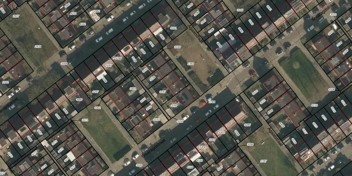 Het perceel waarop Agaatstraat 13 staat heeft een oppervlakte van 250 m². Dit is een middelgroot perceel. De perceeloppervlakte wordt geregistreerd door het Kadaster. Gedetailleerde informatie over de maten van dit perceel kunt u vinden in het rapport Kadastrale kaart met maatvoering van Agaatstraat 13.