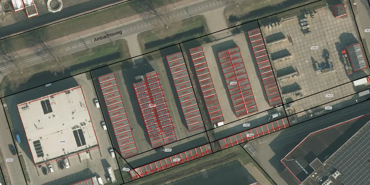Het perceel waarop Ambachtsweg 13-G-7 staat heeft een oppervlakte van 2534 m². Dit is een zeer groot perceel. De perceeloppervlakte wordt geregistreerd door het Kadaster. Gedetailleerde informatie over de maten van dit perceel kunt u vinden in het rapport Kadastrale kaart met maatvoering van Ambachtsweg 13-G-7.