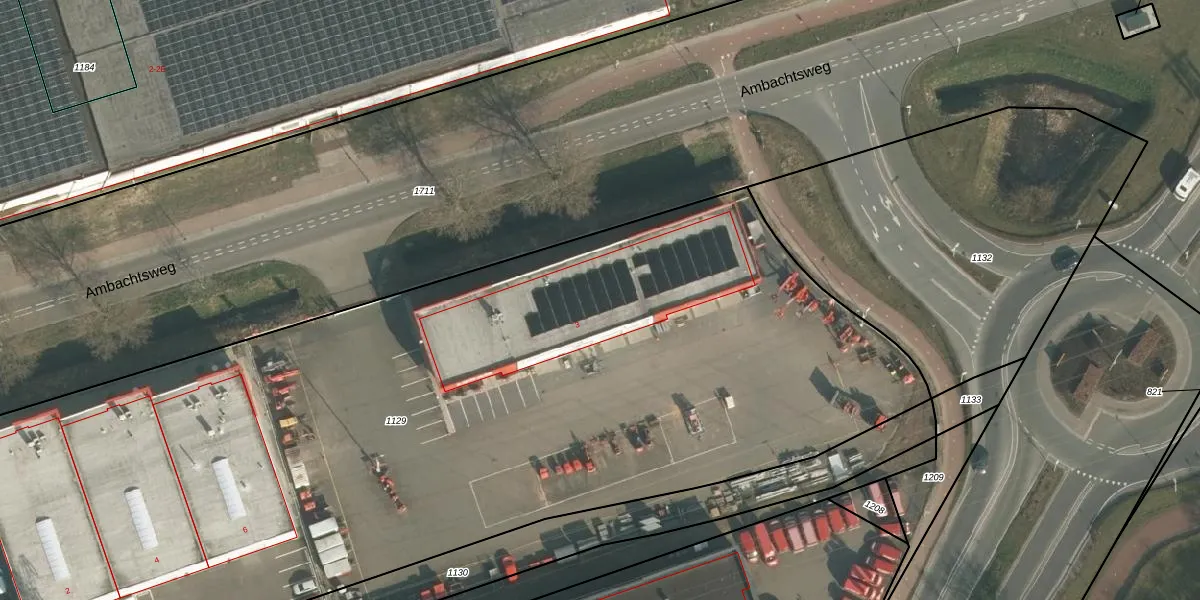 Het perceel waarop Ambachtsweg 3 staat heeft een oppervlakte van 6695 m². Dit is een zeer groot perceel. De perceeloppervlakte wordt geregistreerd door het Kadaster. Gedetailleerde informatie over de maten van dit perceel kunt u vinden in het rapport Kadastrale kaart met maatvoering van Ambachtsweg 3.