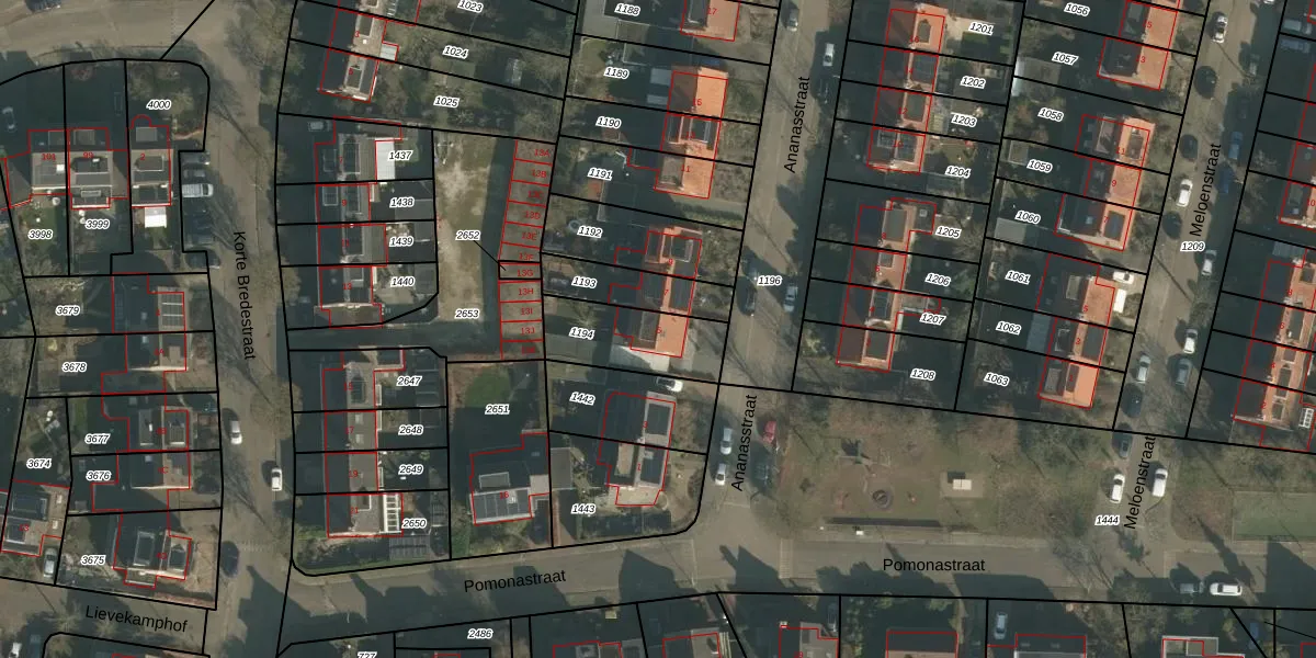 Gebruik de zoekbalk of klik op een perceel voor informatie over de adressen binnen dit perceel.