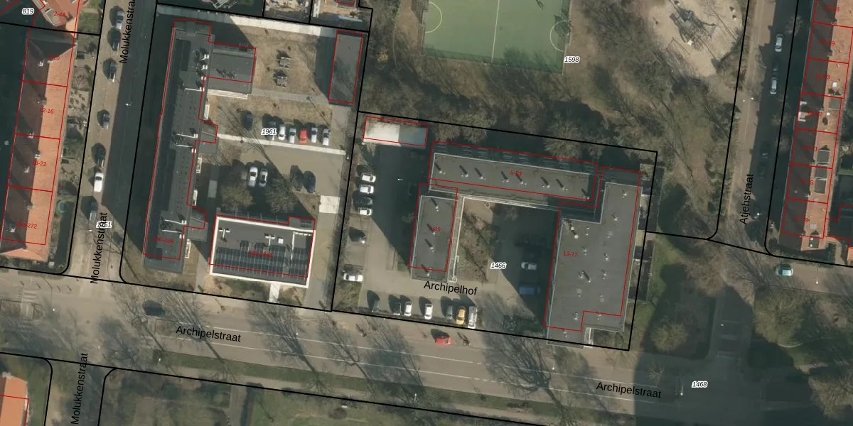 Het perceel waarop Archipelhof 21 staat heeft een oppervlakte van 3310 m². Dit is een zeer groot perceel. De perceeloppervlakte wordt geregistreerd door het Kadaster. Gedetailleerde informatie over de maten van dit perceel kunt u vinden in het rapport Kadastrale kaart met maatvoering van Archipelhof 21.