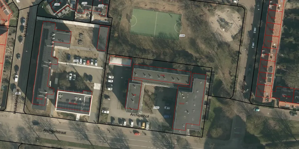 Het perceel waarop Archipelhof 23 staat heeft een oppervlakte van 3310 m². Dit is een zeer groot perceel. De perceeloppervlakte wordt geregistreerd door het Kadaster. Gedetailleerde informatie over de maten van dit perceel kunt u vinden in het rapport Kadastrale kaart met maatvoering van Archipelhof 23.