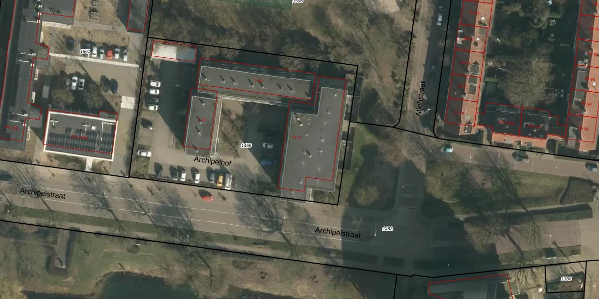 Het perceel waarop Archipelhof 40 staat heeft een oppervlakte van 3310 m². Dit is een zeer groot perceel. De perceeloppervlakte wordt geregistreerd door het Kadaster. Gedetailleerde informatie over de maten van dit perceel kunt u vinden in het rapport Kadastrale kaart met maatvoering van Archipelhof 40.