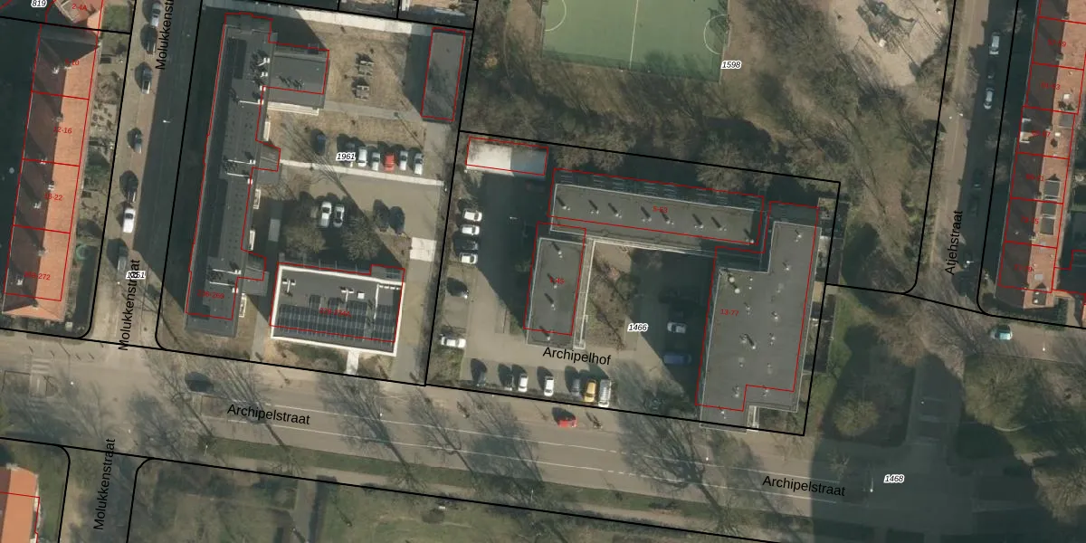 Het perceel waarop Archipelhof 45 staat heeft een oppervlakte van 3310 m². Dit is een zeer groot perceel. De perceeloppervlakte wordt geregistreerd door het Kadaster. Gedetailleerde informatie over de maten van dit perceel kunt u vinden in het rapport Kadastrale kaart met maatvoering van Archipelhof 45.