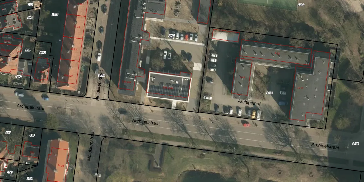 Het perceel waarop Archipelstraat 228 staat heeft een oppervlakte van 3332 m². Dit is een zeer groot perceel. De perceeloppervlakte wordt geregistreerd door het Kadaster. Gedetailleerde informatie over de maten van dit perceel kunt u vinden in het rapport Kadastrale kaart met maatvoering van Archipelstraat 228.