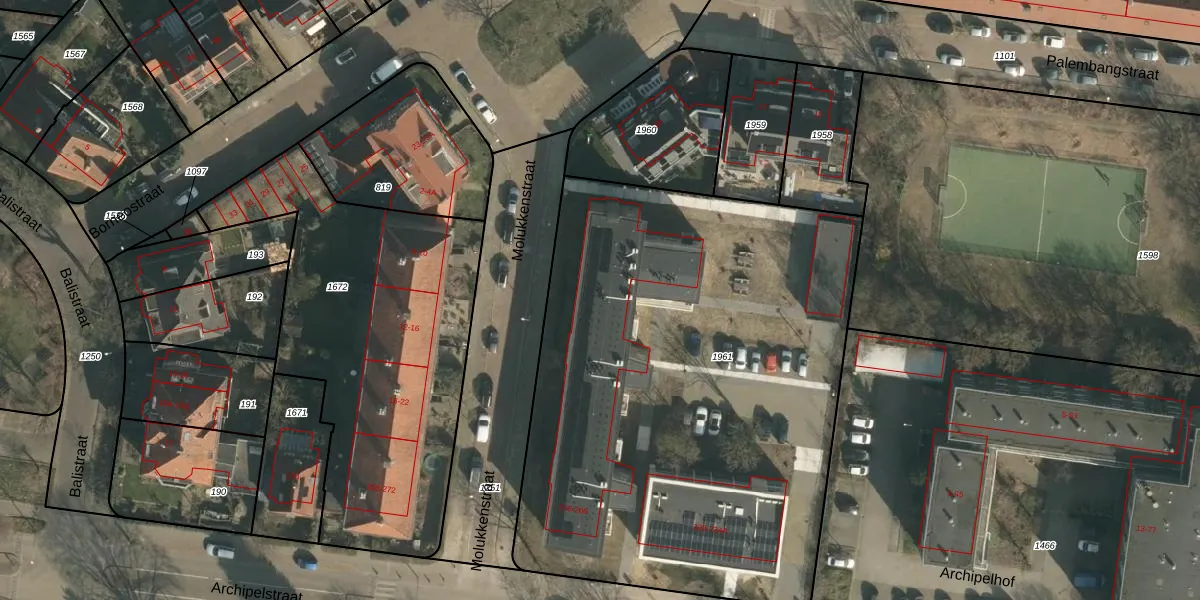 Het perceel waarop Archipelstraat 256 staat heeft een oppervlakte van 3332 m². Dit is een zeer groot perceel. De perceeloppervlakte wordt geregistreerd door het Kadaster. Gedetailleerde informatie over de maten van dit perceel kunt u vinden in het rapport Kadastrale kaart met maatvoering van Archipelstraat 256.