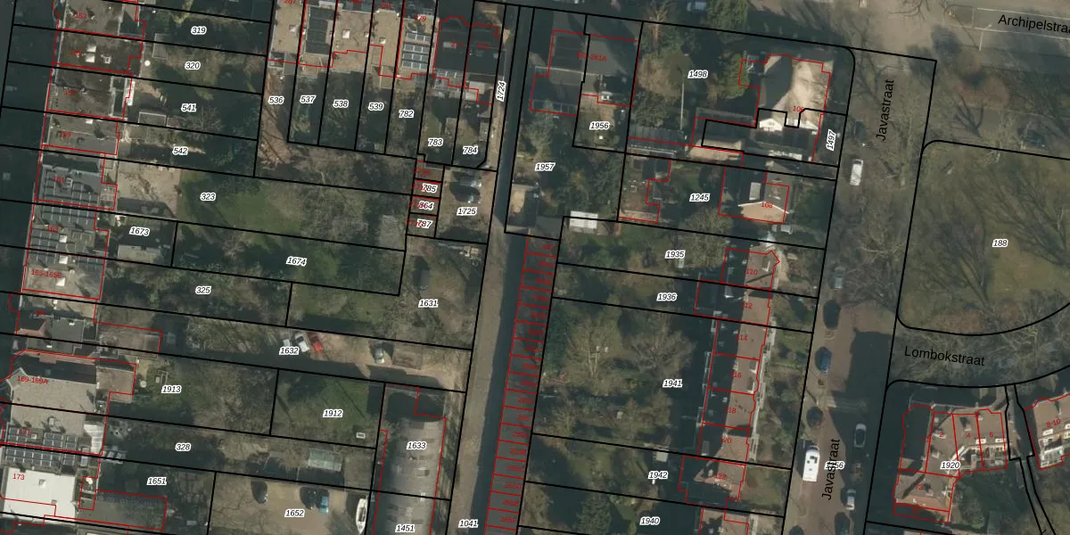 Het perceel waarop Archipelstraat 263-A staat heeft een oppervlakte van 2145 m². Dit is een zeer groot perceel. De perceeloppervlakte wordt geregistreerd door het Kadaster. Gedetailleerde informatie over de maten van dit perceel kunt u vinden in het rapport Kadastrale kaart met maatvoering van Archipelstraat 263-A.