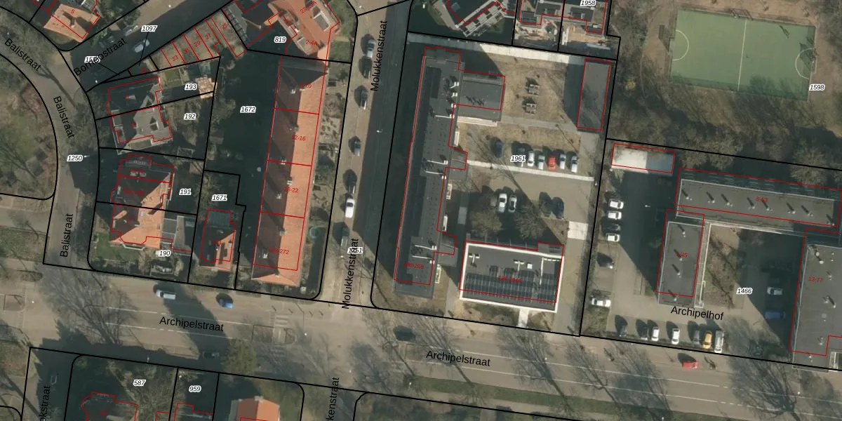 Het perceel waarop Archipelstraat 264 staat heeft een oppervlakte van 3332 m². Dit is een zeer groot perceel. De perceeloppervlakte wordt geregistreerd door het Kadaster. Gedetailleerde informatie over de maten van dit perceel kunt u vinden in het rapport Kadastrale kaart met maatvoering van Archipelstraat 264.