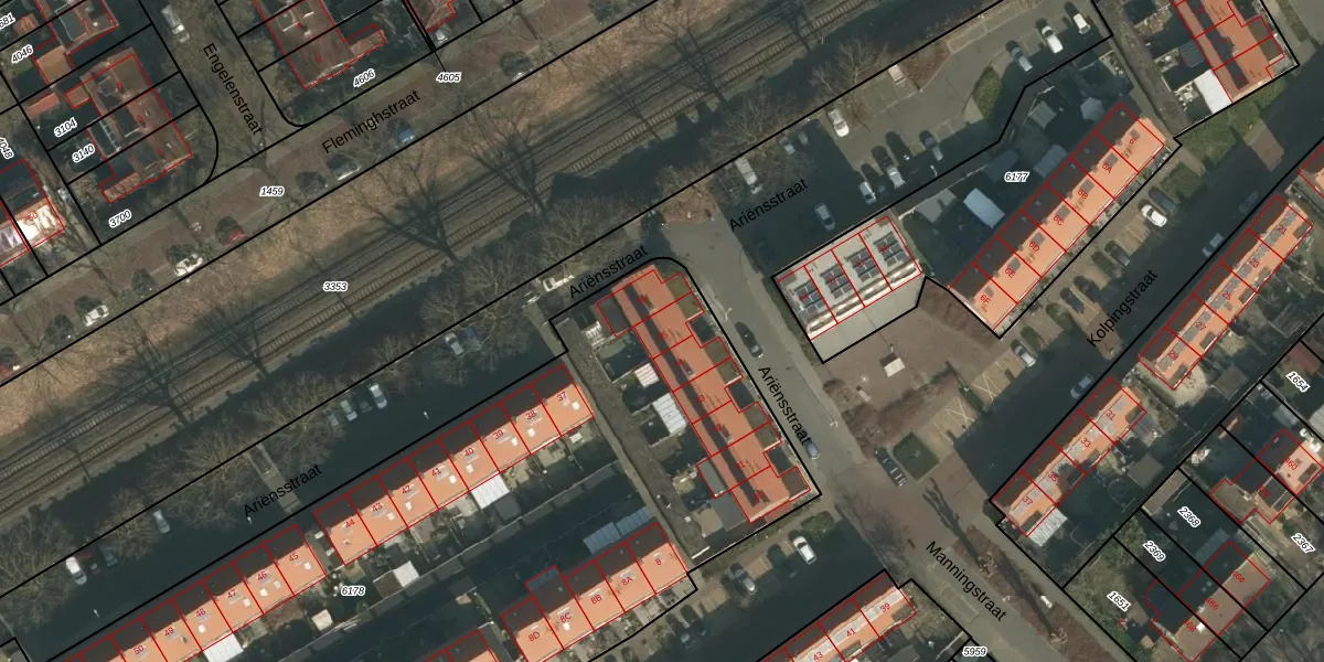 Het perceel waarop Ariënsstraat 35 staat heeft een oppervlakte van 5855 m². Dit is een zeer groot perceel. De perceeloppervlakte wordt geregistreerd door het Kadaster. Gedetailleerde informatie over de maten van dit perceel kunt u vinden in het rapport Kadastrale kaart met maatvoering van Ariënsstraat 35.