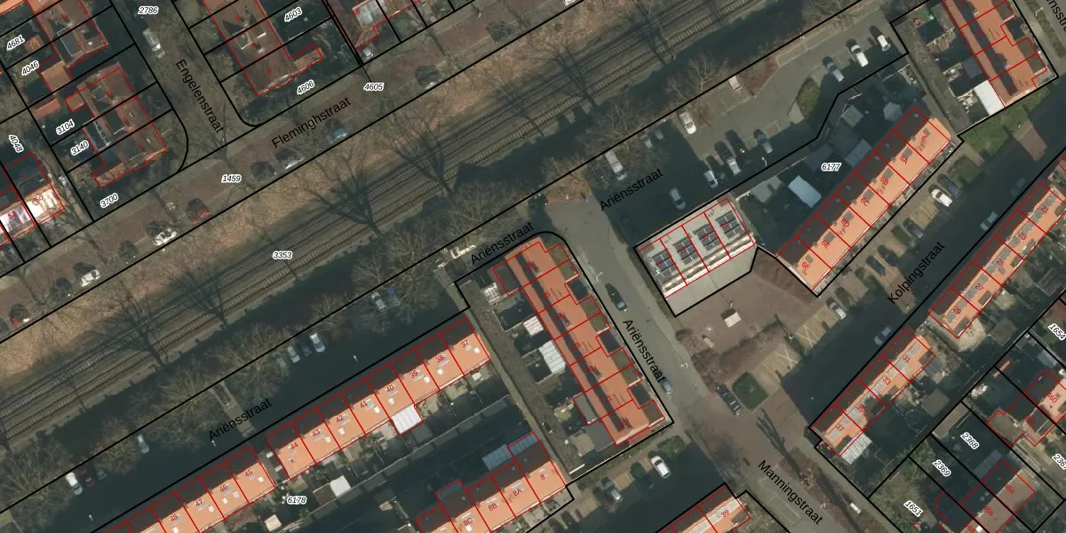 Het perceel waarop Ariënsstraat 36 staat heeft een oppervlakte van 5855 m². Dit is een zeer groot perceel. De perceeloppervlakte wordt geregistreerd door het Kadaster. Gedetailleerde informatie over de maten van dit perceel kunt u vinden in het rapport Kadastrale kaart met maatvoering van Ariënsstraat 36.