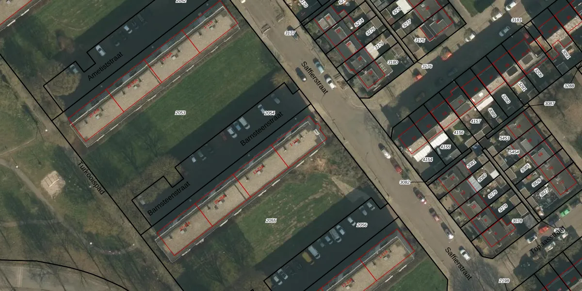 Het perceel waarop Barnsteenstraat 1 staat heeft een oppervlakte van 2955 m². Dit is een zeer groot perceel. De perceeloppervlakte wordt geregistreerd door het Kadaster. Gedetailleerde informatie over de maten van dit perceel kunt u vinden in het rapport Kadastrale kaart met maatvoering van Barnsteenstraat 1.