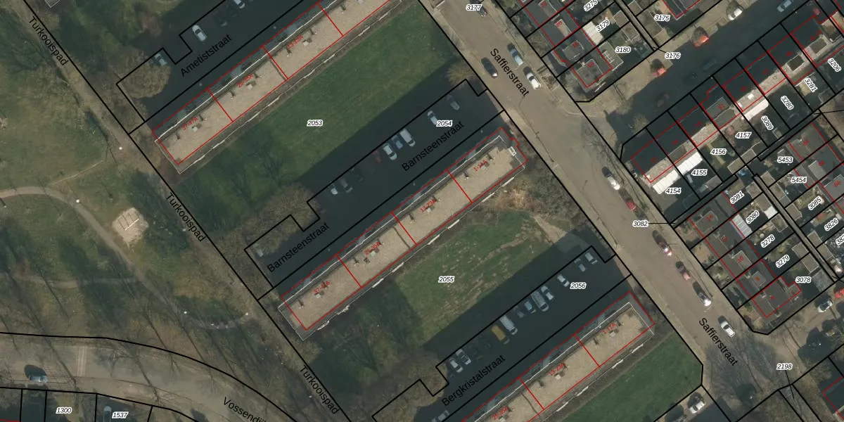 Het perceel waarop Barnsteenstraat 19 staat heeft een oppervlakte van 2955 m². Dit is een zeer groot perceel. De perceeloppervlakte wordt geregistreerd door het Kadaster. Gedetailleerde informatie over de maten van dit perceel kunt u vinden in het rapport Kadastrale kaart met maatvoering van Barnsteenstraat 19.