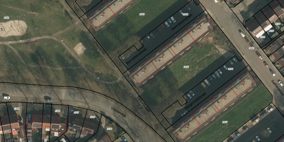 Het perceel waarop Barnsteenstraat 47 staat heeft een oppervlakte van 2955 m². Dit is een zeer groot perceel. De perceeloppervlakte wordt geregistreerd door het Kadaster. Gedetailleerde informatie over de maten van dit perceel kunt u vinden in het rapport Kadastrale kaart met maatvoering van Barnsteenstraat 47.