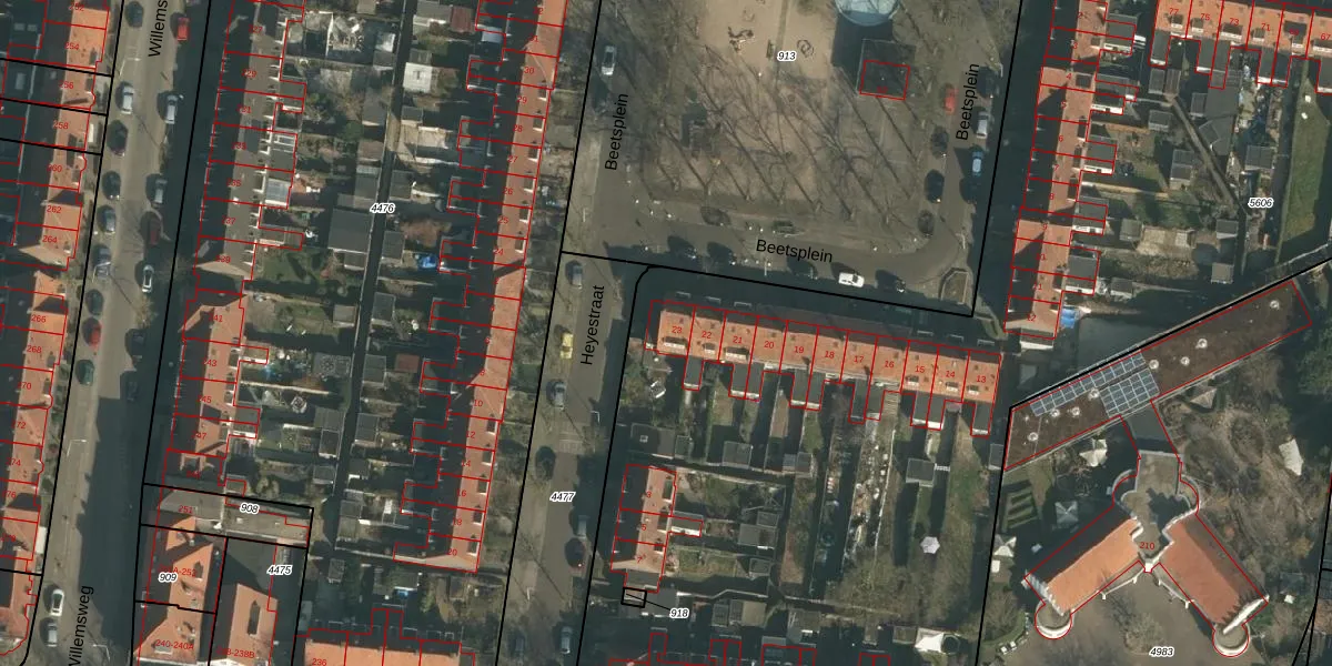 Het perceel waarop Beetsplein 23 staat heeft een oppervlakte van 1,2 ha. Dit is een zeer groot perceel. De perceeloppervlakte wordt geregistreerd door het Kadaster. Gedetailleerde informatie over de maten van dit perceel kunt u vinden in het rapport Kadastrale kaart met maatvoering van Beetsplein 23.