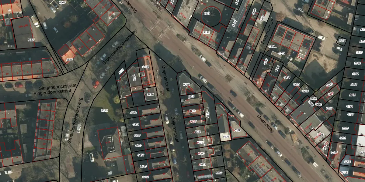 Beijensstraat 1 is gelegen op kadastraal perceel HTT02A7239. Deze kadastrale aanduiding is uniek en wordt gebruikt door het Kadaster om eigendomsrechten en andere zakelijke rechten vast te leggen. Het perceel maakt onderdeel uit van de kadastrale gemeente Hatert.