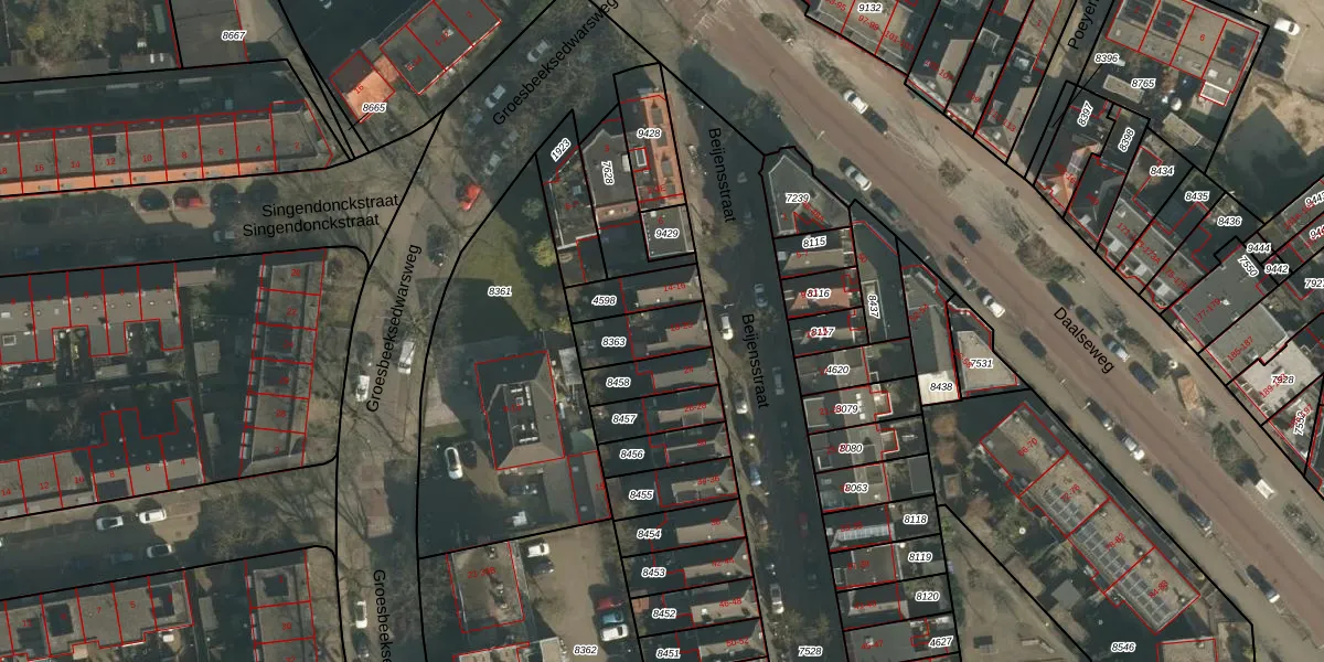 Het perceel waarop het adres ligt is HTT02-A-8363. De afkorting 'HTT02' staat voor kadastrale gemeente Hatert. Het perceel is kleiner dan gemiddeld in Hatert. Het perceel is 146 m² groot, terwijl het gemiddelde ligt op 909,05 m². Het grootste perceel in de kadastrale gemeente is 66,9 ha. Het kleinste perceel heeft een oppervlakte van 0 m². Er zijn 2 adressen aanwezig op het perceel. De laatste wijziging in het de Basisregistratie Kadaster (BRK) was op 23-07-2002.