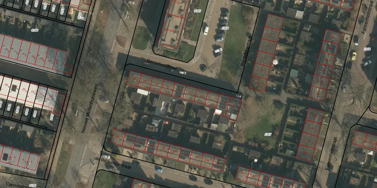 Het perceel waarop Berzeliusstraat 21 staat heeft een oppervlakte van 9215 m². Dit is een zeer groot perceel. De perceeloppervlakte wordt geregistreerd door het Kadaster. Gedetailleerde informatie over de maten van dit perceel kunt u vinden in het rapport Kadastrale kaart met maatvoering van Berzeliusstraat 21.