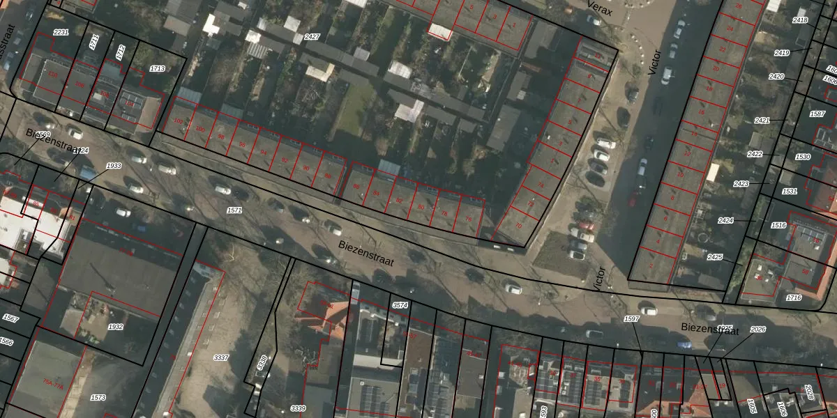 Biezenstraat 80 is gelegen op kadastraal perceel NBH00A2427. Deze kadastrale aanduiding is uniek en wordt gebruikt door het Kadaster om eigendomsrechten en andere zakelijke rechten vast te leggen. Het perceel maakt onderdeel uit van de kadastrale gemeente Neerbosch.