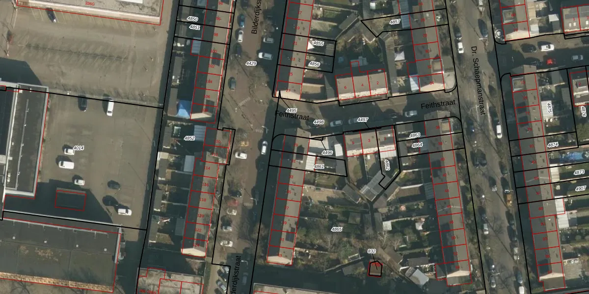 Het perceel waarop Bilderdijkstraat 29 staat heeft een oppervlakte van 5186 m². Dit is een zeer groot perceel. De perceeloppervlakte wordt geregistreerd door het Kadaster. Gedetailleerde informatie over de maten van dit perceel kunt u vinden in het rapport Kadastrale kaart met maatvoering van Bilderdijkstraat 29.