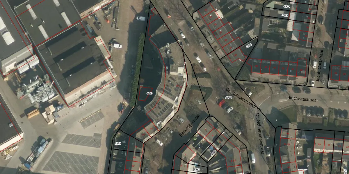 Het perceel waarop Bilderdijkstraat 48 staat heeft een oppervlakte van 1520 m². Dit is een zeer groot perceel. De perceeloppervlakte wordt geregistreerd door het Kadaster. Gedetailleerde informatie over de maten van dit perceel kunt u vinden in het rapport Kadastrale kaart met maatvoering van Bilderdijkstraat 48.