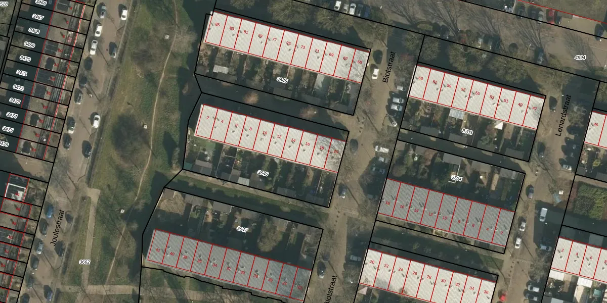 Het perceel waarop Biotstraat 16 staat heeft een oppervlakte van 1328 m². Dit is een zeer groot perceel. De perceeloppervlakte wordt geregistreerd door het Kadaster. Gedetailleerde informatie over de maten van dit perceel kunt u vinden in het rapport Kadastrale kaart met maatvoering van Biotstraat 16.