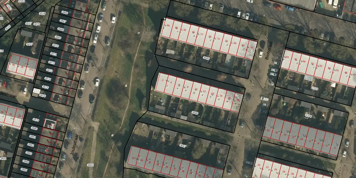 Het perceel waarop Biotstraat 6 staat heeft een oppervlakte van 1328 m². Dit is een zeer groot perceel. De perceeloppervlakte wordt geregistreerd door het Kadaster. Gedetailleerde informatie over de maten van dit perceel kunt u vinden in het rapport Kadastrale kaart met maatvoering van Biotstraat 6.