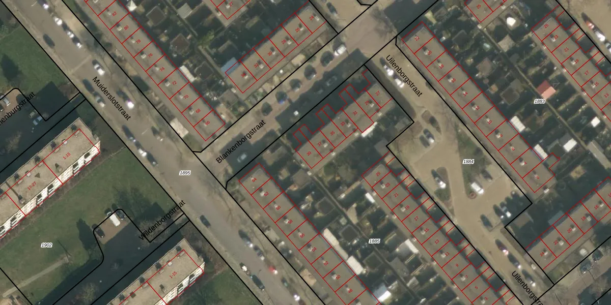 Het perceel waarop Blankenborgstraat 39 staat heeft een oppervlakte van 4985 m². Dit is een zeer groot perceel. De perceeloppervlakte wordt geregistreerd door het Kadaster. Gedetailleerde informatie over de maten van dit perceel kunt u vinden in het rapport Kadastrale kaart met maatvoering van Blankenborgstraat 39.