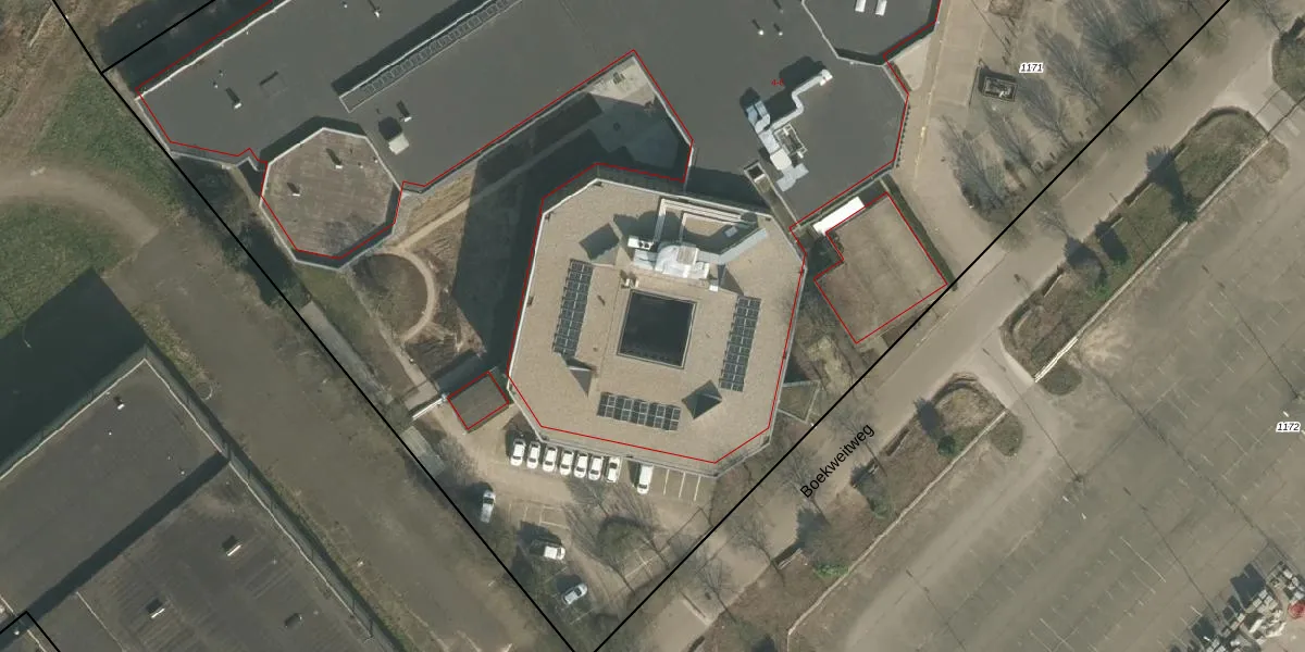 Het perceel waarop Boekweitweg 6 staat heeft een oppervlakte van 2,0 ha. Dit is een zeer groot perceel. De perceeloppervlakte wordt geregistreerd door het Kadaster. Gedetailleerde informatie over de maten van dit perceel kunt u vinden in het rapport Kadastrale kaart met maatvoering van Boekweitweg 6.