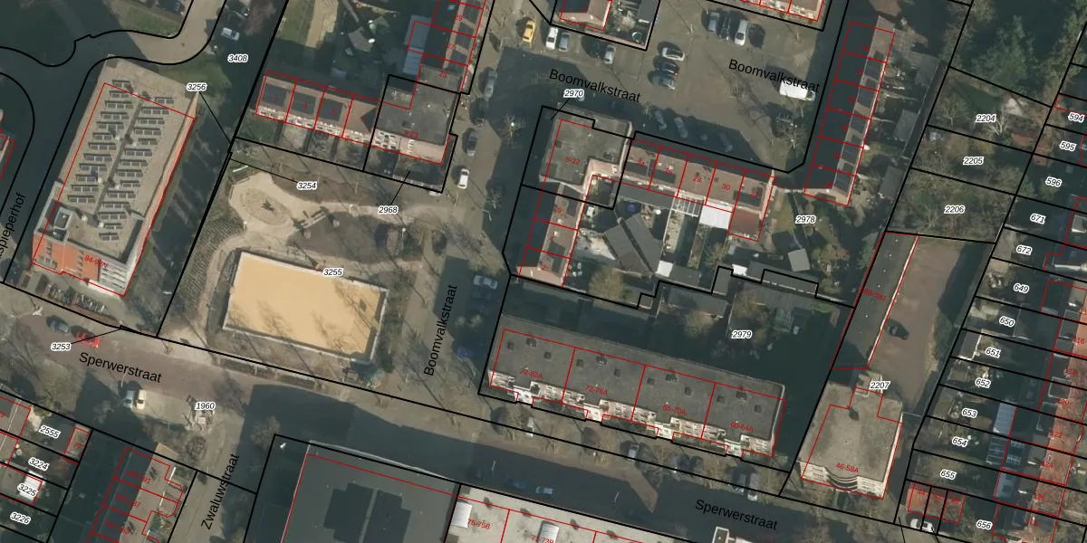 Het perceel waarop Boomvalkstraat 2 staat heeft een oppervlakte van 2227 m². Dit is een zeer groot perceel. De perceeloppervlakte wordt geregistreerd door het Kadaster. Gedetailleerde informatie over de maten van dit perceel kunt u vinden in het rapport Kadastrale kaart met maatvoering van Boomvalkstraat 2.