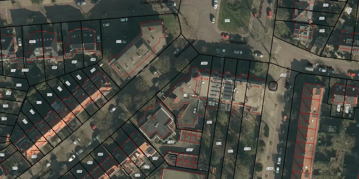 Het perceel waarop Borneostraat 1-C staat heeft een oppervlakte van 810 m². Dit is een groot perceel. De perceeloppervlakte wordt geregistreerd door het Kadaster. Gedetailleerde informatie over de maten van dit perceel kunt u vinden in het rapport Kadastrale kaart met maatvoering van Borneostraat 1-C.