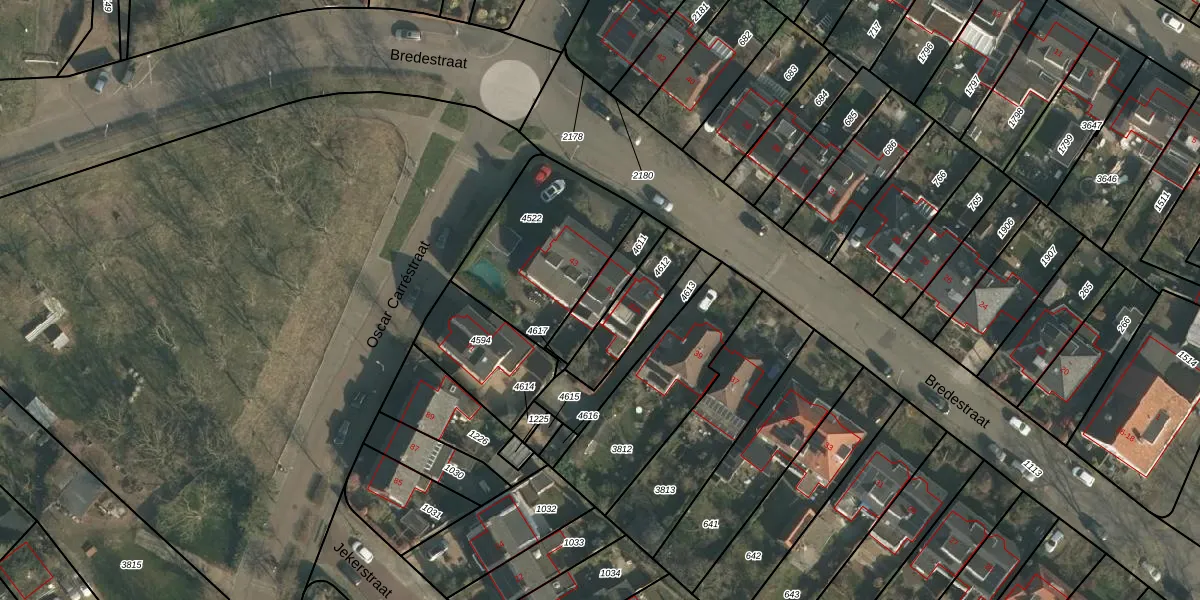 Bredestraat 41 is gelegen op kadastraal perceel NBH00H4611. Deze kadastrale aanduiding is uniek en wordt gebruikt door het Kadaster om eigendomsrechten en andere zakelijke rechten vast te leggen. Het perceel maakt onderdeel uit van de kadastrale gemeente Neerbosch.