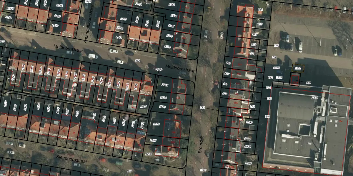 Gebruik de zoekbalk of klik op een perceel voor informatie over de adressen binnen dit perceel.