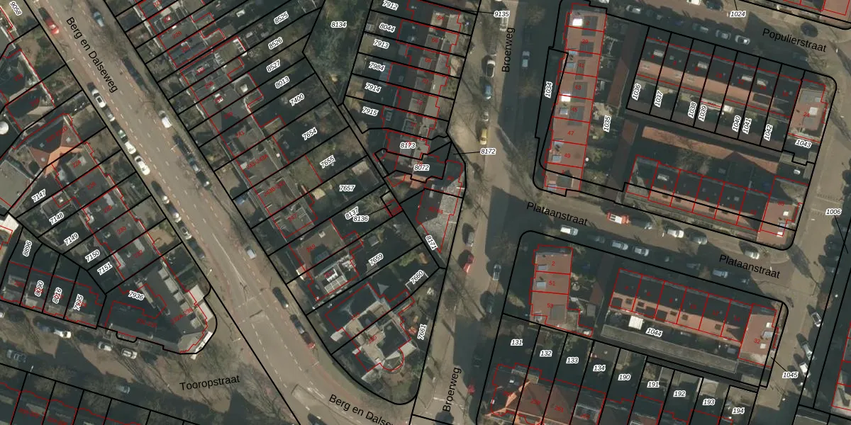 Het perceel waarop Broerweg 84 staat heeft een oppervlakte van 175 m². Dit is een middelgroot perceel. De perceeloppervlakte wordt geregistreerd door het Kadaster. Gedetailleerde informatie over de maten van dit perceel kunt u vinden in het rapport Kadastrale kaart met maatvoering van Broerweg 84.