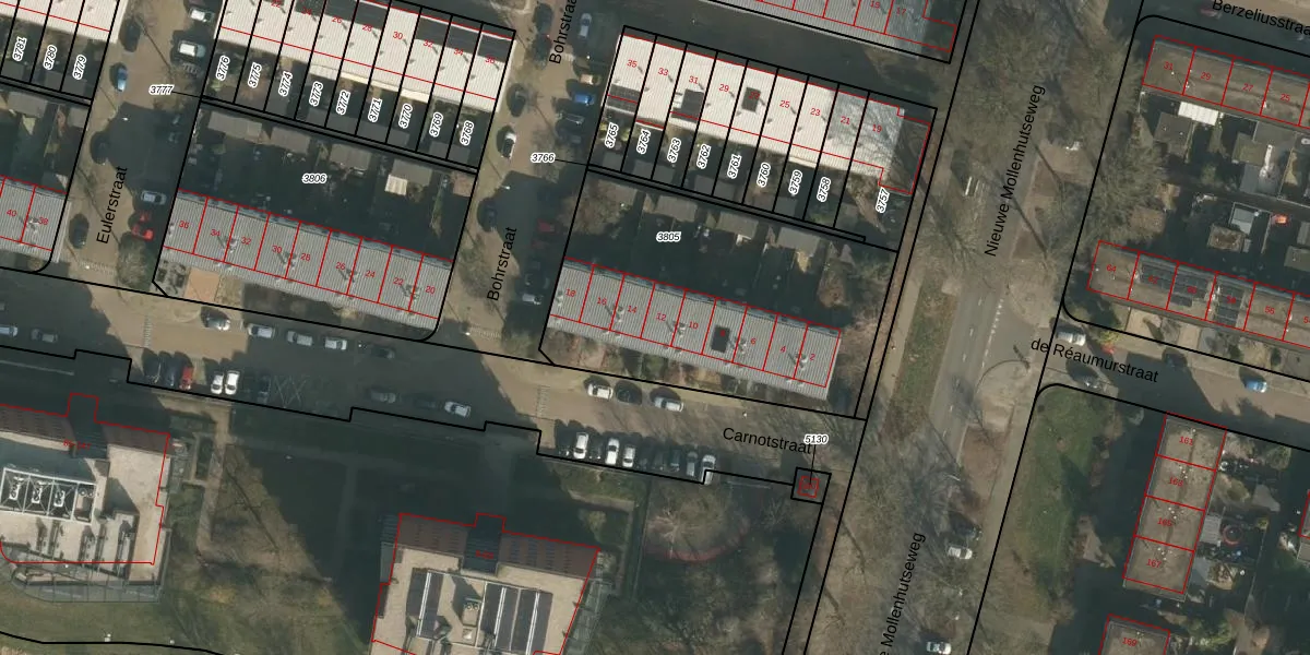 Het perceel waarop Carnotstraat 12 staat heeft een oppervlakte van 1389 m². Dit is een zeer groot perceel. De perceeloppervlakte wordt geregistreerd door het Kadaster. Gedetailleerde informatie over de maten van dit perceel kunt u vinden in het rapport Kadastrale kaart met maatvoering van Carnotstraat 12.