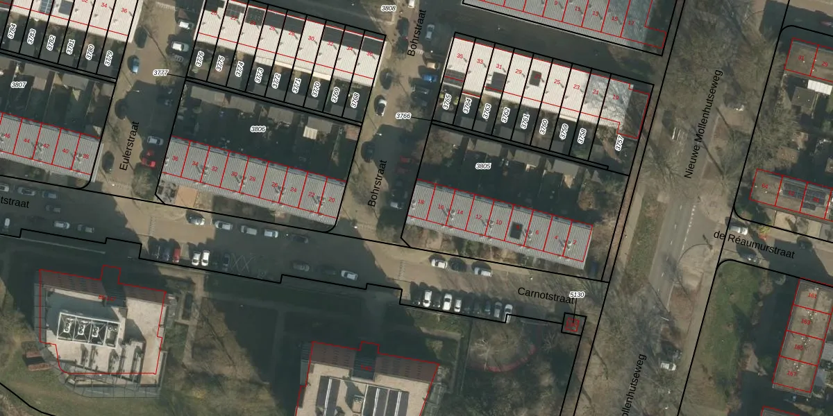 Het perceel waarop Carnotstraat 18 staat heeft een oppervlakte van 1389 m². Dit is een zeer groot perceel. De perceeloppervlakte wordt geregistreerd door het Kadaster. Gedetailleerde informatie over de maten van dit perceel kunt u vinden in het rapport Kadastrale kaart met maatvoering van Carnotstraat 18.