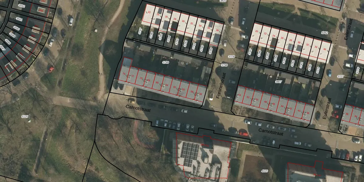 Het perceel waarop Carnotstraat 60 staat heeft een oppervlakte van 1455 m². Dit is een zeer groot perceel. De perceeloppervlakte wordt geregistreerd door het Kadaster. Gedetailleerde informatie over de maten van dit perceel kunt u vinden in het rapport Kadastrale kaart met maatvoering van Carnotstraat 60.