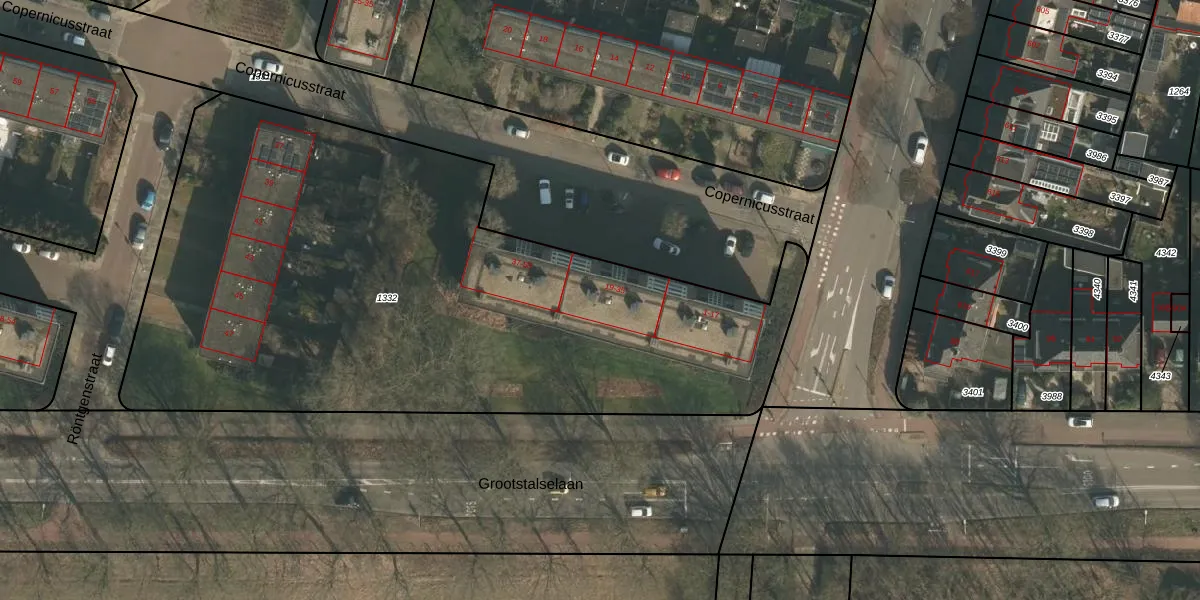 Het perceel waarop Copernicusstraat 25 staat heeft een oppervlakte van 3890 m². Dit is een zeer groot perceel. De perceeloppervlakte wordt geregistreerd door het Kadaster. Gedetailleerde informatie over de maten van dit perceel kunt u vinden in het rapport Kadastrale kaart met maatvoering van Copernicusstraat 25.