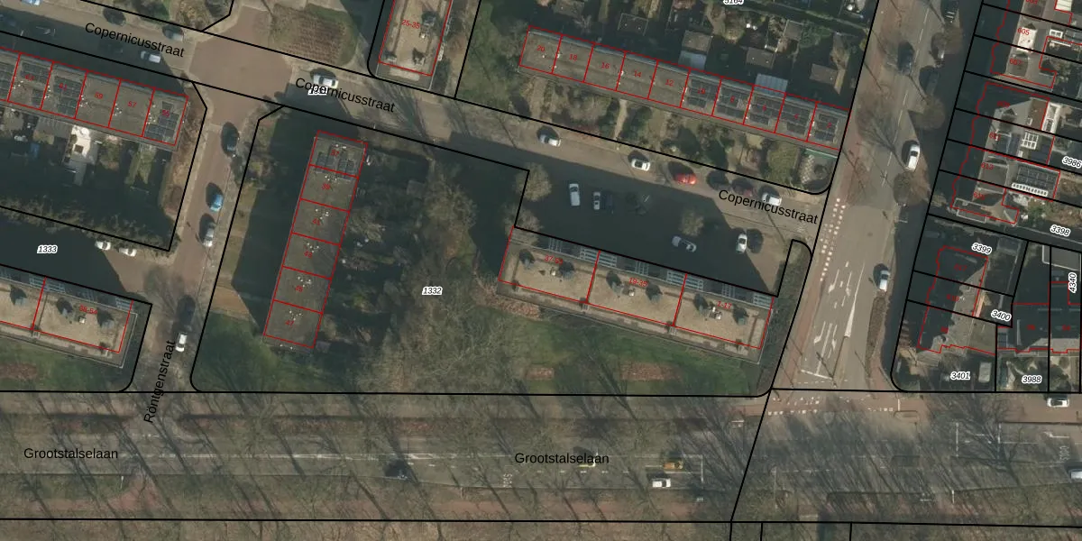 Het perceel waarop Copernicusstraat 45 staat heeft een oppervlakte van 3890 m². Dit is een zeer groot perceel. De perceeloppervlakte wordt geregistreerd door het Kadaster. Gedetailleerde informatie over de maten van dit perceel kunt u vinden in het rapport Kadastrale kaart met maatvoering van Copernicusstraat 45.
