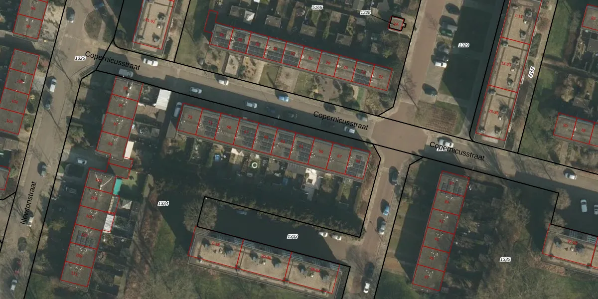 Het perceel waarop Copernicusstraat 61 staat heeft een oppervlakte van 6850 m². Dit is een zeer groot perceel. De perceeloppervlakte wordt geregistreerd door het Kadaster. Gedetailleerde informatie over de maten van dit perceel kunt u vinden in het rapport Kadastrale kaart met maatvoering van Copernicusstraat 61.