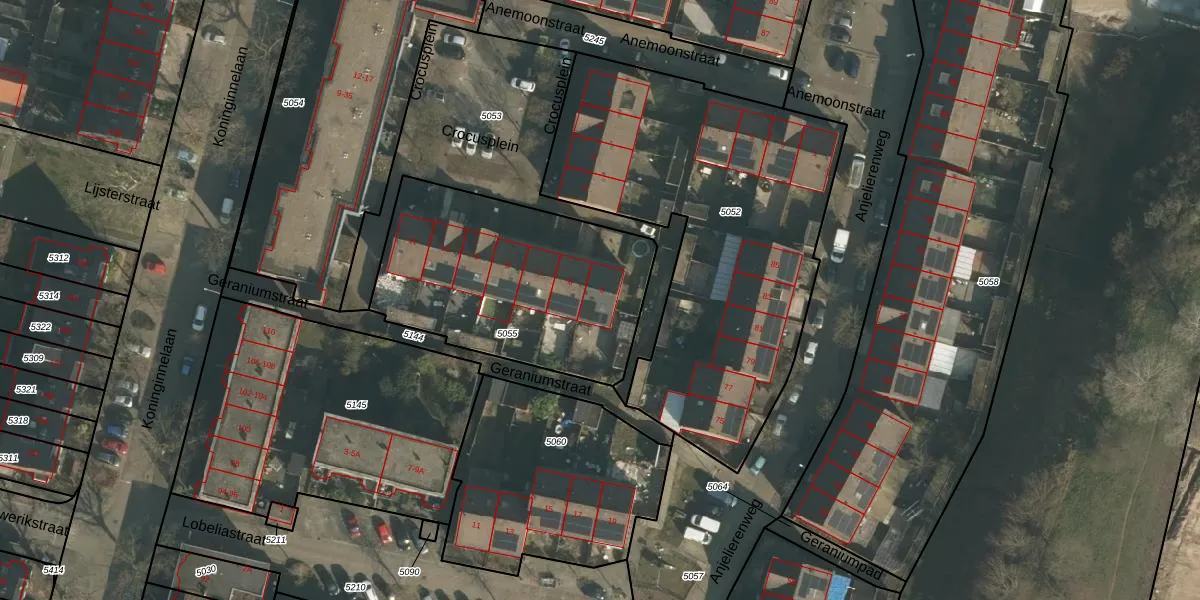 Het perceel waarop Crocusplein 5 staat heeft een oppervlakte van 1095 m². Dit is een zeer groot perceel. De perceeloppervlakte wordt geregistreerd door het Kadaster. Gedetailleerde informatie over de maten van dit perceel kunt u vinden in het rapport Kadastrale kaart met maatvoering van Crocusplein 5.
