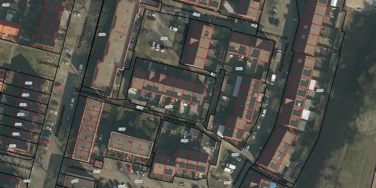 Het perceel waarop Crocusplein 6 staat heeft een oppervlakte van 1095 m². Dit is een zeer groot perceel. De perceeloppervlakte wordt geregistreerd door het Kadaster. Gedetailleerde informatie over de maten van dit perceel kunt u vinden in het rapport Kadastrale kaart met maatvoering van Crocusplein 6.