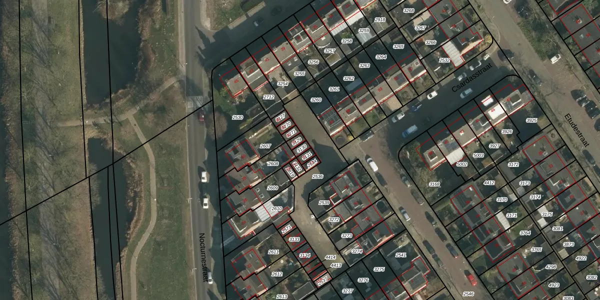 Het perceel waarop Csardasstraat 77 staat heeft een oppervlakte van 18 m². Dit is een klein perceel. De perceeloppervlakte wordt geregistreerd door het Kadaster. Gedetailleerde informatie over de maten van dit perceel kunt u vinden in het rapport Kadastrale kaart met maatvoering van Csardasstraat 77.