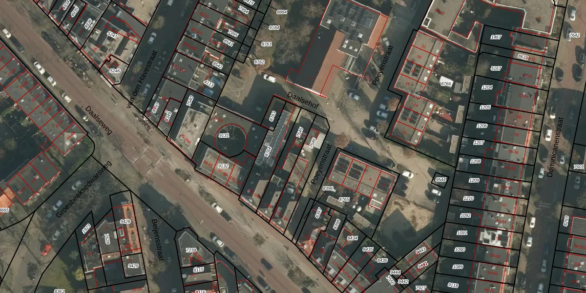 Daalsehof 5-B is gelegen op kadastraal perceel HTT02A7545. Deze kadastrale aanduiding is uniek en wordt gebruikt door het Kadaster om eigendomsrechten en andere zakelijke rechten vast te leggen. Het perceel maakt onderdeel uit van de kadastrale gemeente Hatert.
