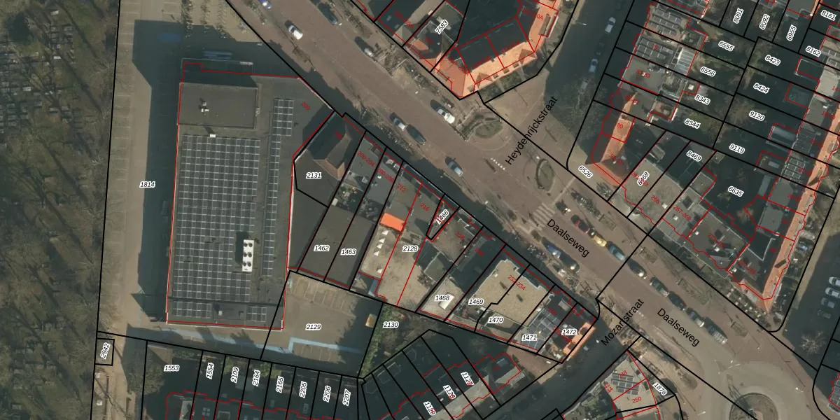 Daalseweg 216 is gelegen op kadastraal perceel HTT02H2128. Deze kadastrale aanduiding is uniek en wordt gebruikt door het Kadaster om eigendomsrechten en andere zakelijke rechten vast te leggen. Het perceel maakt onderdeel uit van de kadastrale gemeente Hatert.