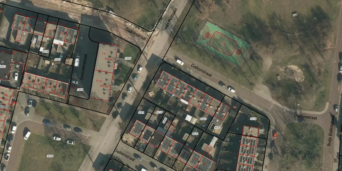 Het perceel waarop Daltonstraat 13 staat heeft een oppervlakte van 2371 m². Dit is een zeer groot perceel. De perceeloppervlakte wordt geregistreerd door het Kadaster. Gedetailleerde informatie over de maten van dit perceel kunt u vinden in het rapport Kadastrale kaart met maatvoering van Daltonstraat 13.